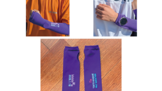 メイドインJapan の大会オリジナルアームカバー、指ぬきを腕時計を表示させる窓としても利用できます。